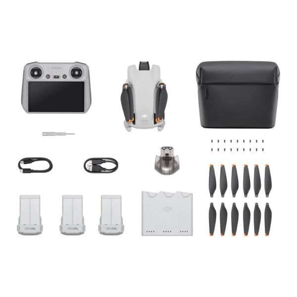 Model name DJI Mini 3 (DJI RC) Fly More Combo | Consumer | Speed 16 m/s | Max altitude 4000 | Lens FOV: 82.1° Format Equivalent: 24 mm Aperture: f/1.7 Focus: 1 m to ∞ | Sensor 1/1.3-inch CMOS | Pixel Resolution 12 Mega Pixel | Shutter Speed 2-1/8000 s | Memory Card Type Micro SDXC | Battery Lithium-Ion rechargeable | Battery capacity 2453 mAh | Flight time 38 minutes | GPS | Dimensions Folded (without propellers): 148×90×62 mm (L×W×H) Unfolded (with propellers): 251×362×72 mm (L×W×H) | Product Net Weight 0.248 kg