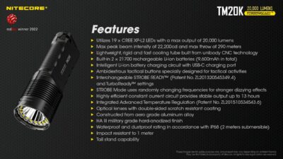 FLASHLIGHT TINY MONSTER SERIES/20000 LUMENS TM20K NITECORE