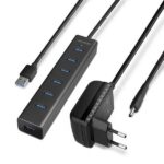 The seven-port AXAGON HUE-SA7BP ALU CHARGING USB 3.0 hub with own power and fast charging support on all USB ports.