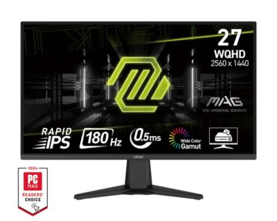 Model MAG 275QF | 27″ | Gaming | Display Matte | Panel IPS | Resolution 2560×1440 | Form factor 16:9 | Refresh rate 180 Hz | Brightness 300 | Contrast 1000:1 | Response time 0.5 ms | Horizontal 178 degrees | Vertical 178 degrees | Displayable colours 1070 million | Kensington lock | Colour Black