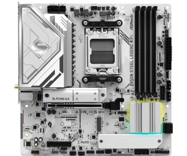 Mainboard|ASROCK|AMD B850|SAM5|Micro-ATX|Memory DDR5|Memory slots 4|4xPCI-Express 4.0 4x |1xPCI-Express 5.0 16x|1xM.2|1xHDMI|1xDisplayPort|1xAudio-In|1xAudio-Out|1xMicrophone|4xUSB 2.0|3xUSB 3.2|1xUSB-C|1xRJ45|B850MSTEELLEGENDWIFI
