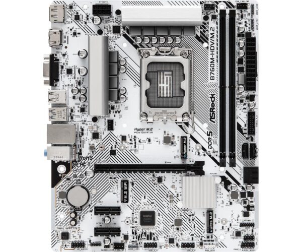 Mainboard|ASROCK|Intel B760 Express|LGA1700|Micro-ATX|Memory DDR5|Memory slots 2|2xPCI-Express 3.0 1x|1xPCI-Express 4.0 16x|1xM.2|1x15pin D-sub|1xHDMI|1xDisplayPort|1xAV-In|1xAV-out|1xMicrophone|2xUSB 2.0|3xUSB 3.2|1xUSB-C|1xRJ45|B760M-HDV/M.2