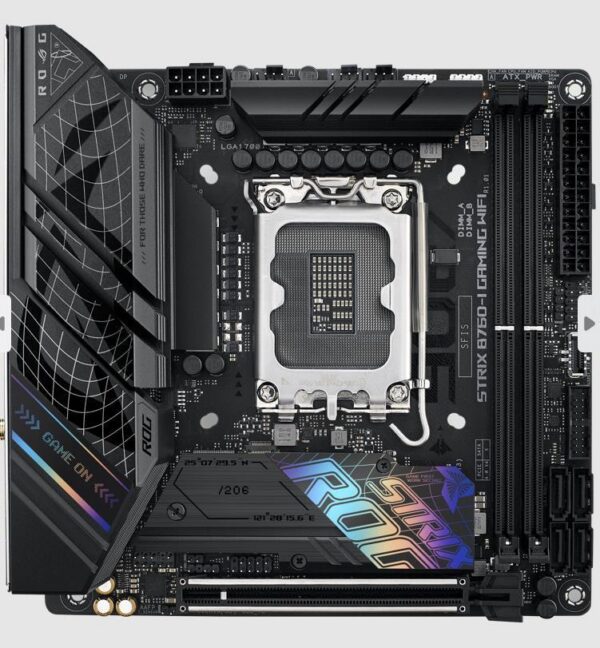 Mainboard|ASUS|Intel B760 Express|LGA1700|Mini-ITX|Memory DDR5|Memory slots 2|1xPCI-Express 5.0 16x|2xM.2|1xHDMI|1xDisplayPort|3xUSB 2.0|3xUSB 3.2|2xUSB-C|1xRJ45|5xAudio port|STRIXB760-IGAMINGWIFI