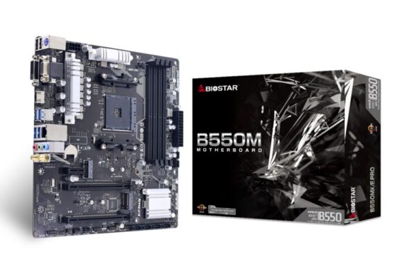 Mainboard|BIOSTAR|AMD B550|SAM4|MicroATX|Memory DDR4|Memory slots 4|1xPCI-Express 3.0 1x|1xPCI-Express 3.0 16x|1xPCI-Express 4.0 16x|2xM.2|1x15pin D-sub|1xDVI-D|1xHDMI|2xUSB 2.0|4xUSB 3.2|1xPS/2|1xRJ45|3xAudio port|B550MX/EPRO