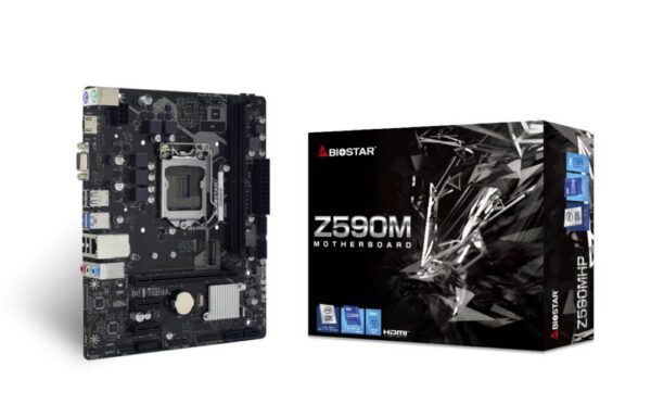 Mainboard|BIOSTAR|Intel Z590 Express|LGA1200|Micro-ATX|Memory DDR4|Memory slots 2|2xPCI-Express 3.0 1x|1xPCI-Express 4.0 16x|1xM.2|1x15pin D-sub|1xHDMI|4xUSB 2.0|2xUSB 3.2|2xPS/2|1xRJ45|3xAudio port|Z590MHP