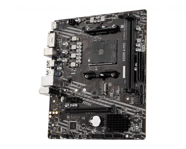 Mainboard|MSI|AMD A520|SAM4|MicroATX|1xPCI-Express 3.0 1x|1xPCI-Express 3.0 16x|1xM.2|Memory DDR4|Memory slots 2|1xDVI|1xHDMI|2xAudio-Out|2xUSB 2.0|4xUSB 3.2|1xRJ45|A520M-APRO