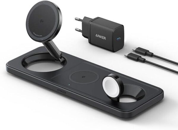 Type Desktop/Wireless | Included Accessories Anker MagGo wireless charging station (3-in-1 pad), 40 W USB-C power supply, 1.5 m USB-C to USB-C cable, instructions (English language not guaranteed) | Colour Black | Dimensions 229 x 86 x 13 mm | Weight 0.34 kg