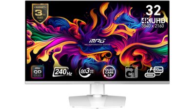 Model MPG 321URXW QD-OLED | 31.5″ | Gaming/4K | Panel QD-OLED | Form factor 16:9 | Refresh rate 240 Hz | Contrast 1500000:1 | Response time 0.03 ms | Horizontal 178 degrees | Vertical 178 degrees | PSU Inbuilt | Kensington lock