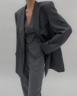 Double-breasted pinstriped blazer in dark grey
